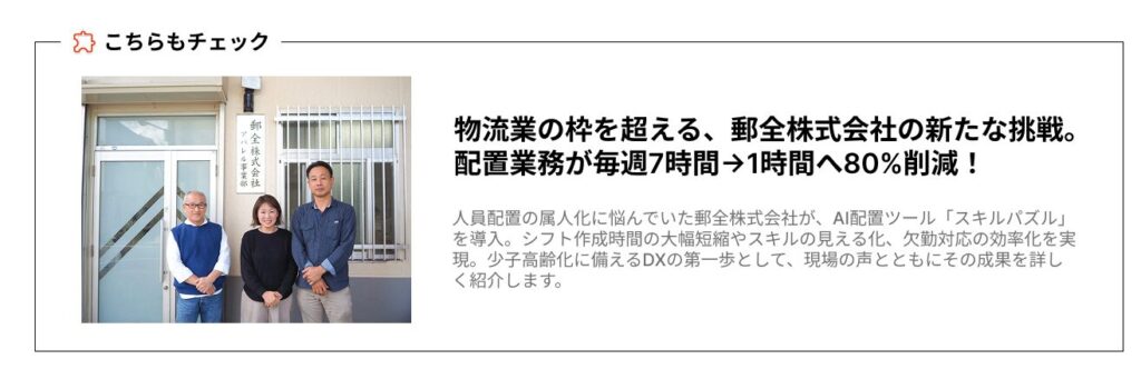 スキルパズルは、製造・物流などの現場における人員配置業務を自動化するAIサービスです。