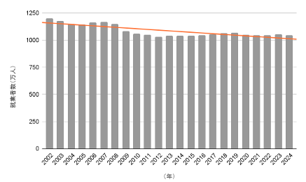 製造業の人手不足は、もはや一時的な問題ではありません。厚生労働省の統計によると、製造業の就業者数は20年間で158万人減少しており(図1参照)、特に検査・品質管理部門では「募集しても人が来ない」「応募があっても長続きしない」という声が現場から聞こえてきます。